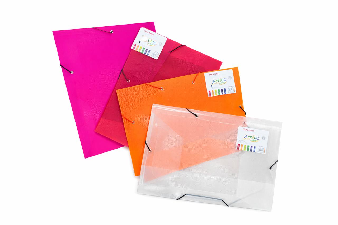 Chemise à rabat tranbo transparent en plastique solide et essuyable • 3 rabats • avec fermeture élastique
