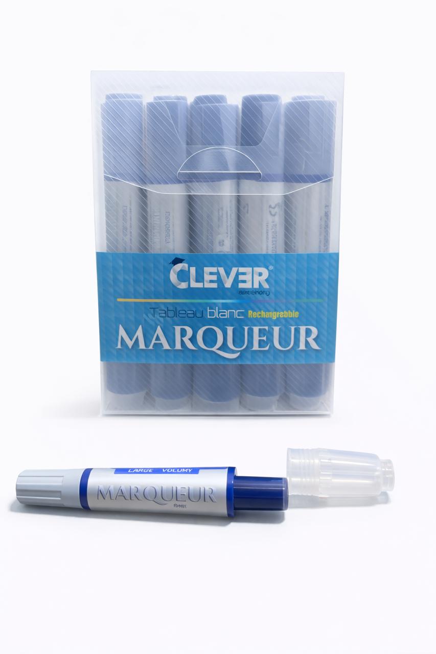 Marqueur Rechargeable 10P CLEVER C-206 – 800M- Effaçable – Pour tableau blanc – Séchage rapide, odeur neutre – Couleur : BLEU