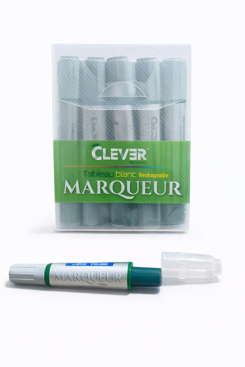 Marqueur Rechargeable 10P CLEVER C-206 – 800M- Effaçable – Pour tableau blanc – Séchage rapide, odeur neutre – Couleur : VERT