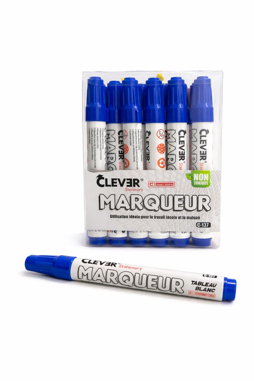 PAQUET MARQUEUR DE 12 POUR TABLEAU BLANC CLEVER BLEU C-137