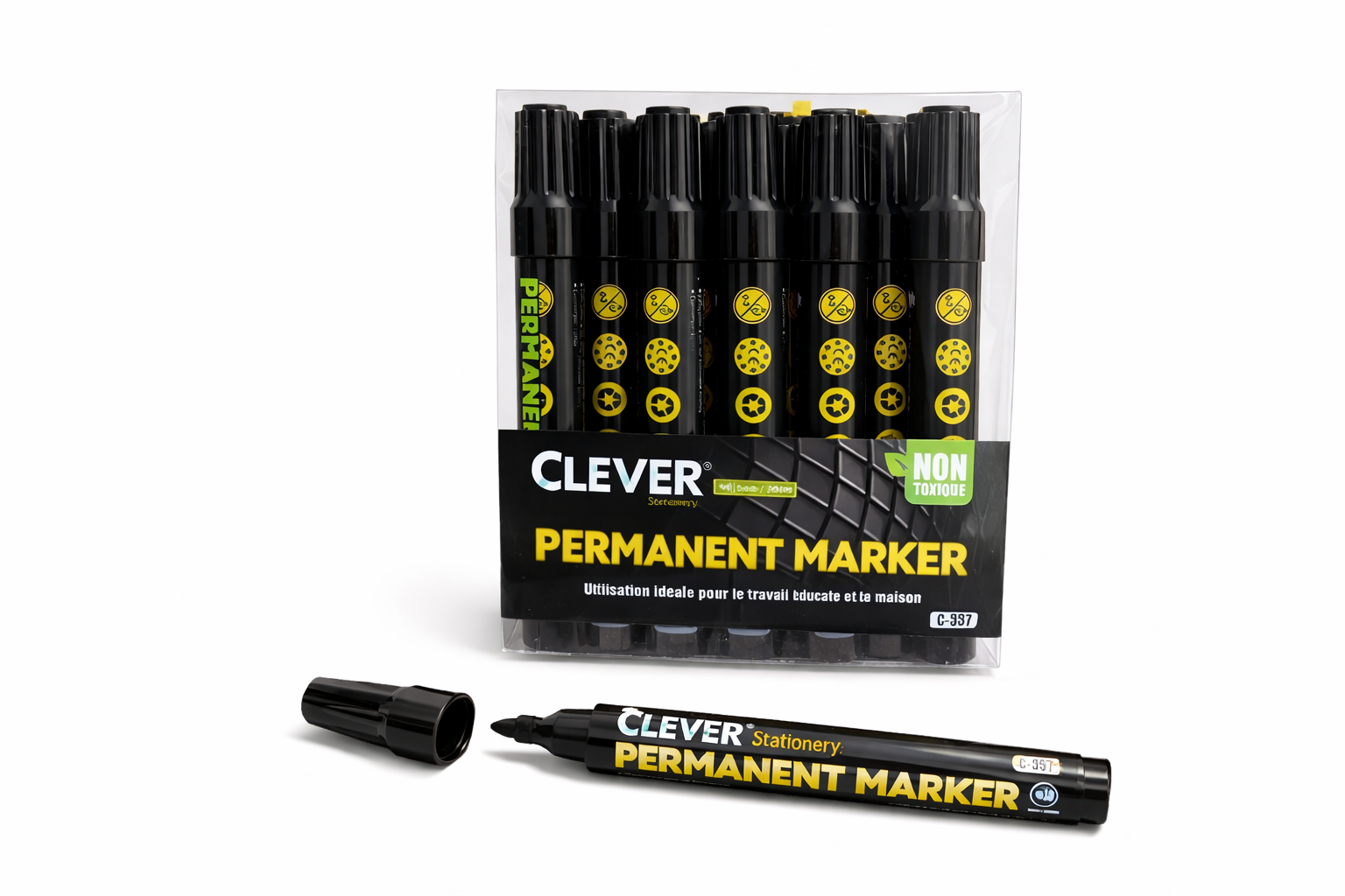 PAQUET MARQUEURDE 12 PERMANENT CLEVER NOIR C-557