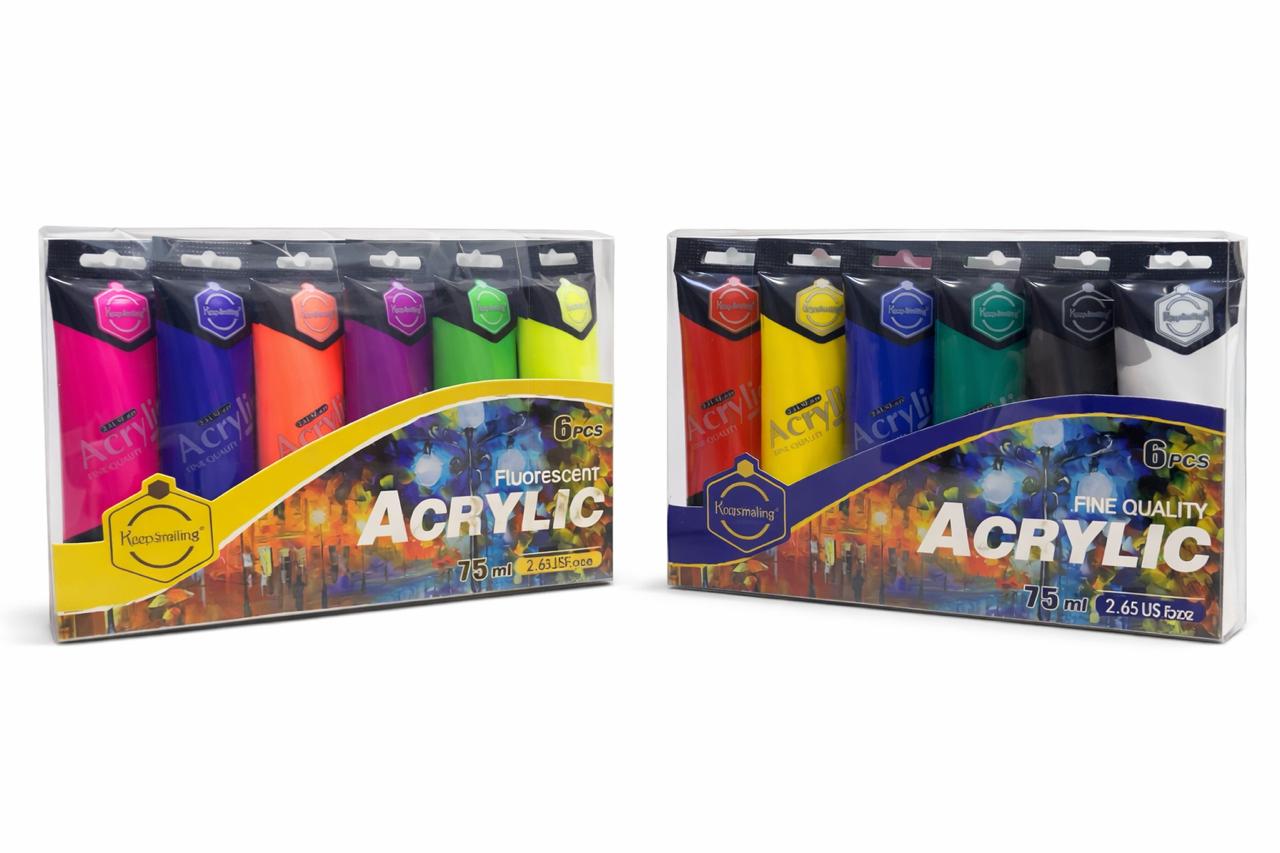 Boite de 6 Tubes Acryliques fluo 75 ml 6 couleurs